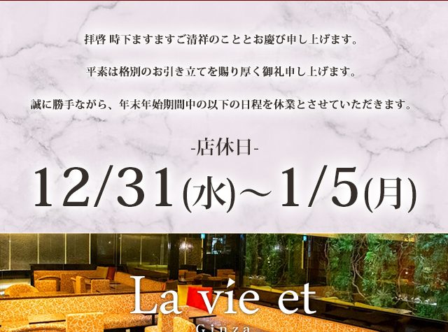 年末年始休業のお知らせ